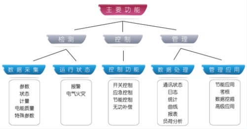 软件一般和设备配套,采用专用软件,如配电系统监控和能量管理软件ERD6000,也可以采用通用监控软件,又称监控和数据采集软件(SCADA)。对软件要求是:具有良好人机界面,能够满足用户。图2为软件系统功能框图: